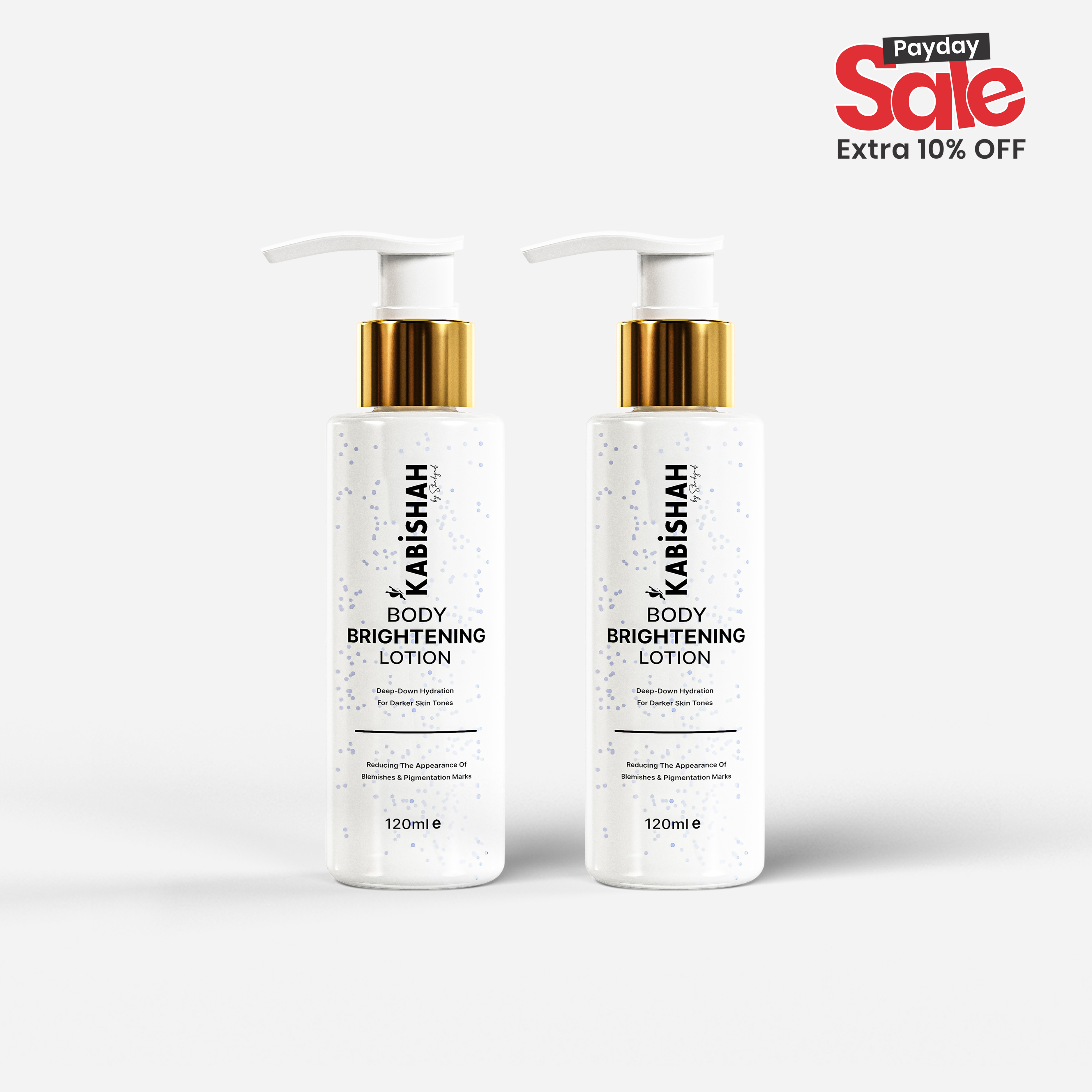 - After cleansing, apply a generous amount of the Body Brightening Moisturizing Lotion onto damp or dry skin.