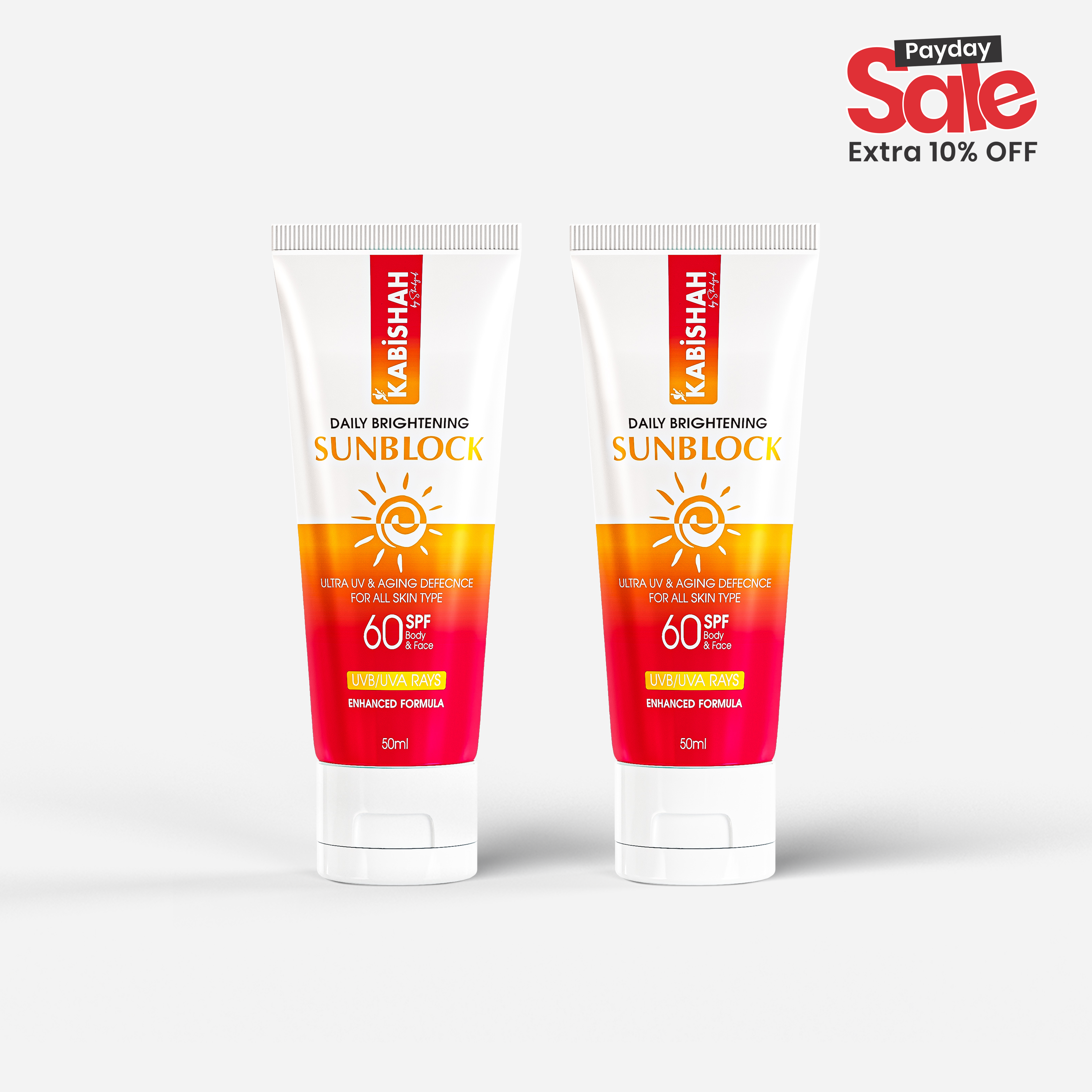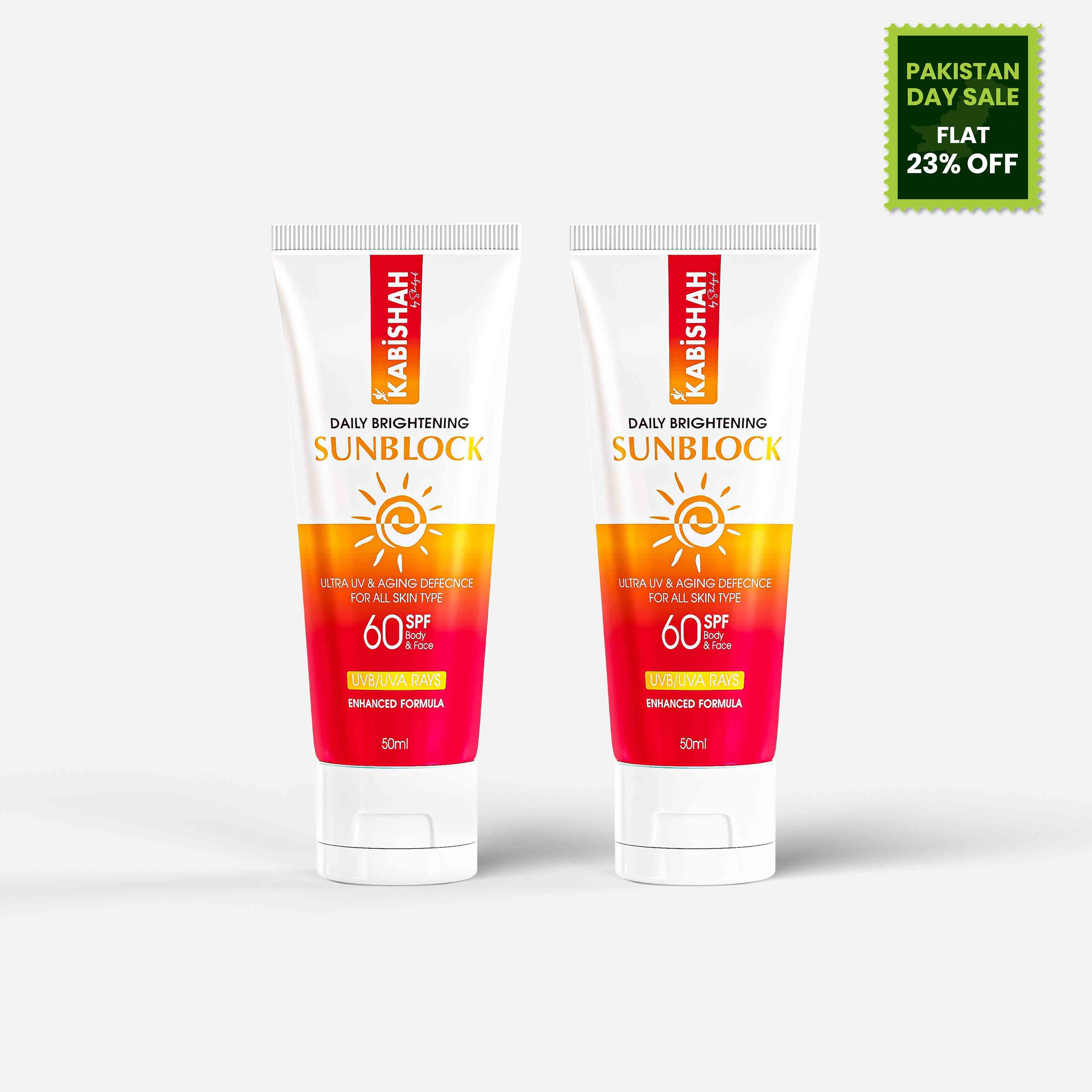 Description: Broad-spectrum protection meets Fairer complexion in this essential UV defense of LuminaGuard Daily Brightening Sunblock from Kabishah by Shahzad.