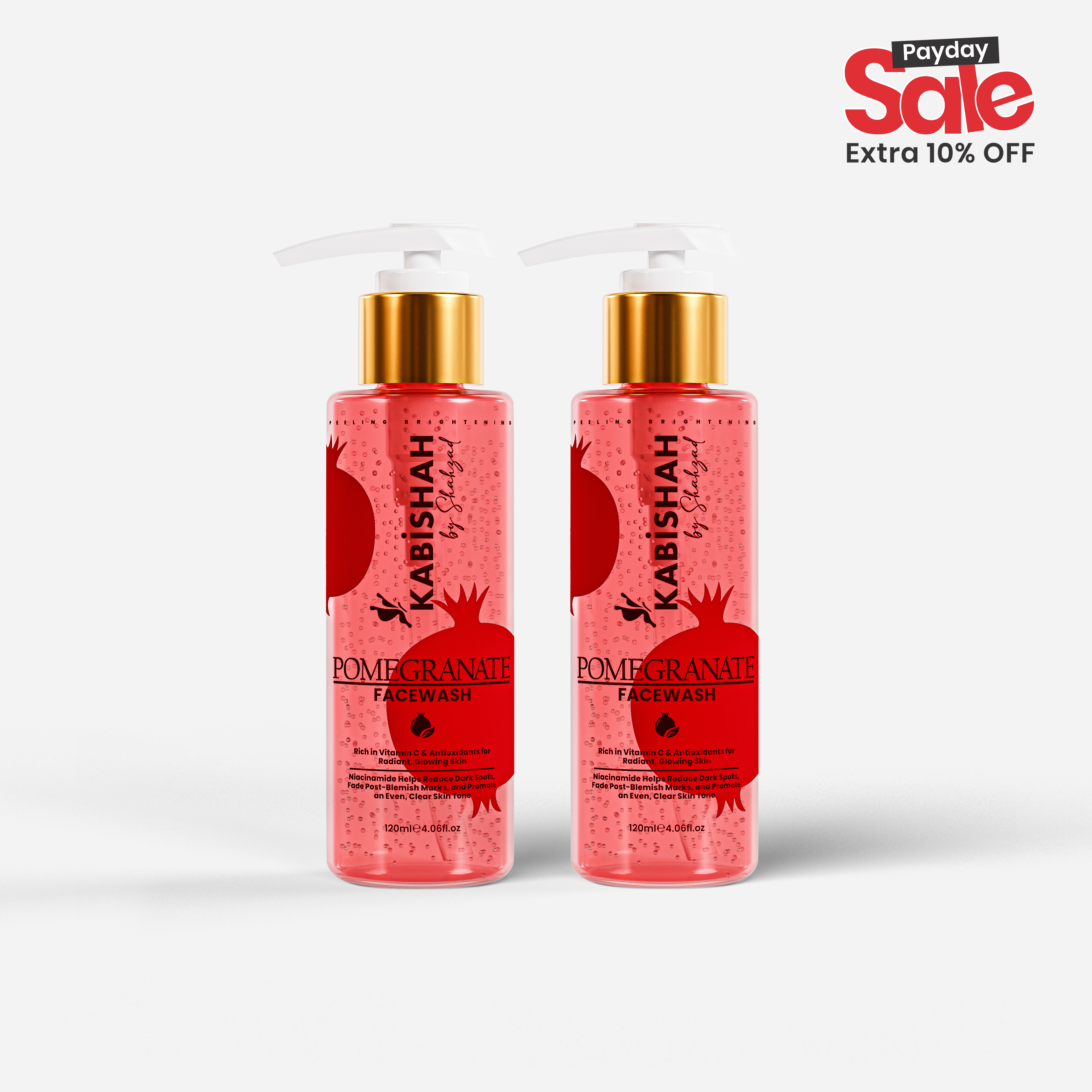 Unveil brighter, fresher, and glowing skin with Kabishah Pomegranate Radiance Face Wash. Enriched with Pomegranate Extract, Vitamin C, Chamomile Extract, Niacinamide, Hyaluronic Acid, and Xanthan Gum, this gentle foaming cleanser removes dirt, oil, and impurities while boosting radiance. Its antioxidant-rich formula fights dullness, soothes skin, and enhances natural glow β leaving your skin clean, soft, and revitalized after every wash.